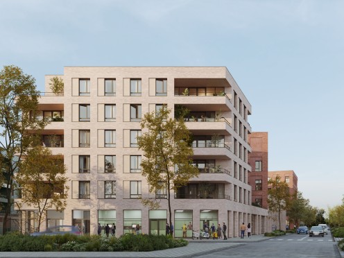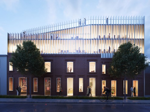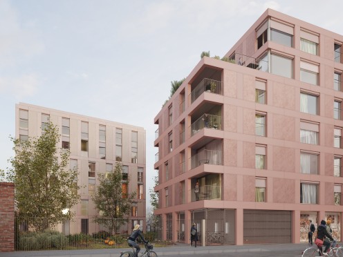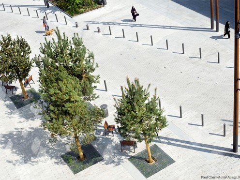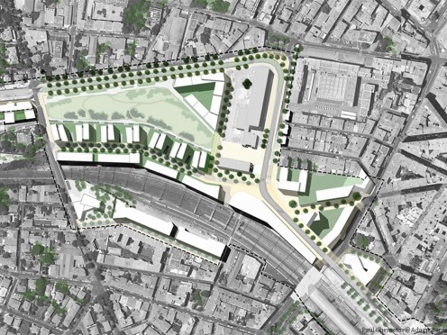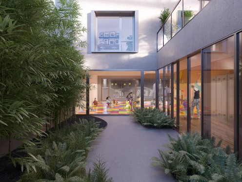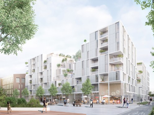 Entre les bâtiments et la voie ferrée, un jardin en pleine terre, cultivé par une association, rappelle l’histoire agricole du site. Sa production sera vendue directement dans les commerces du rez-de-chaussée.