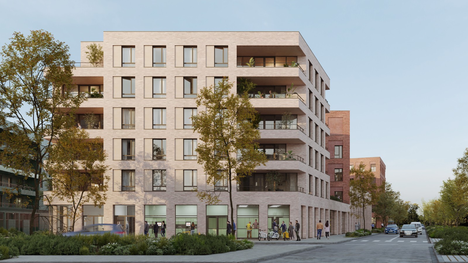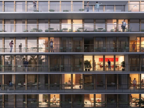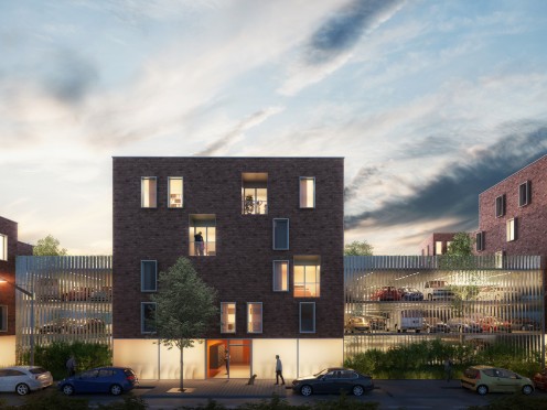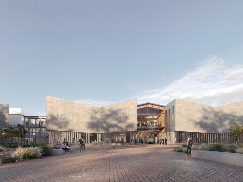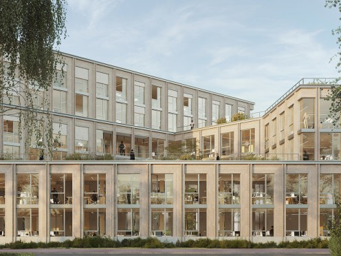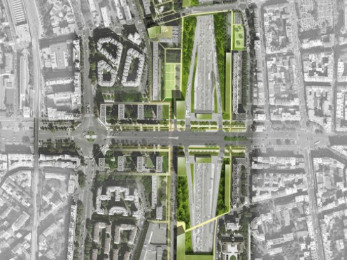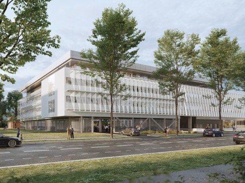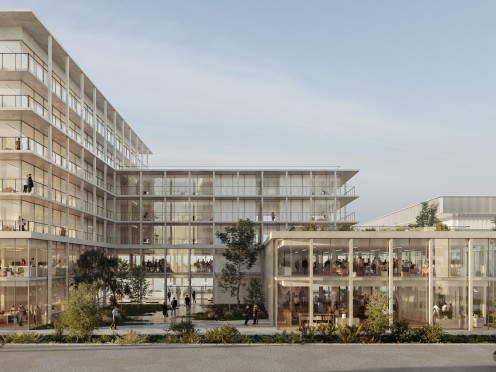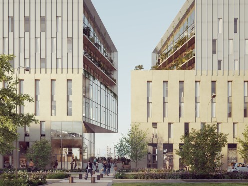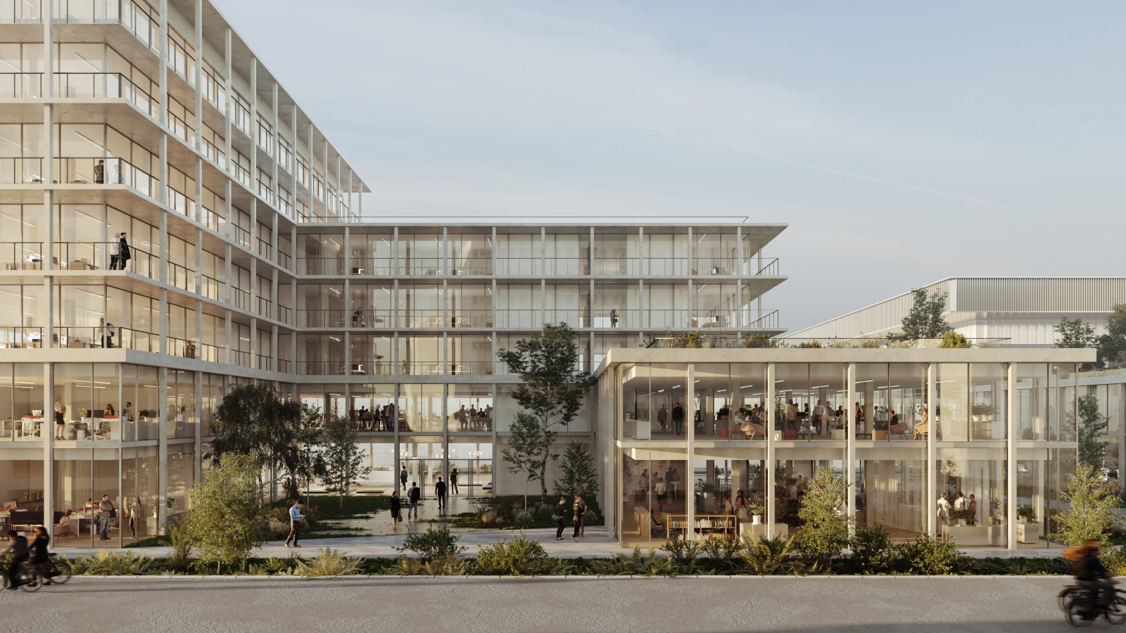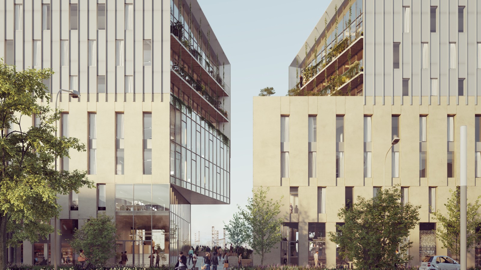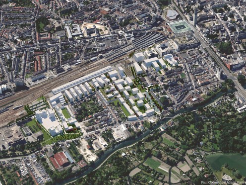 Le bâtiment de coworking vu depuis la voie nouvelle Le nouveau quartier se construit sur des friches ferroviaires et l’opération …