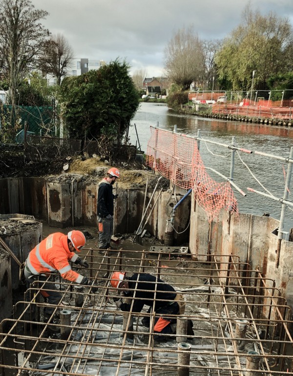 Début de chantier pour la passerelle reliant le Parc Nisso Pelossof aux Hortillonnages dans le cadre des projets d’aménagements urbains de la ZAC Gare la Vallée à Amiens menés par l’Atelier Masséna et Ronald Sirio. Les fondations se forment avant d’accueillir les premiers éléments de la charpente au printemps.
