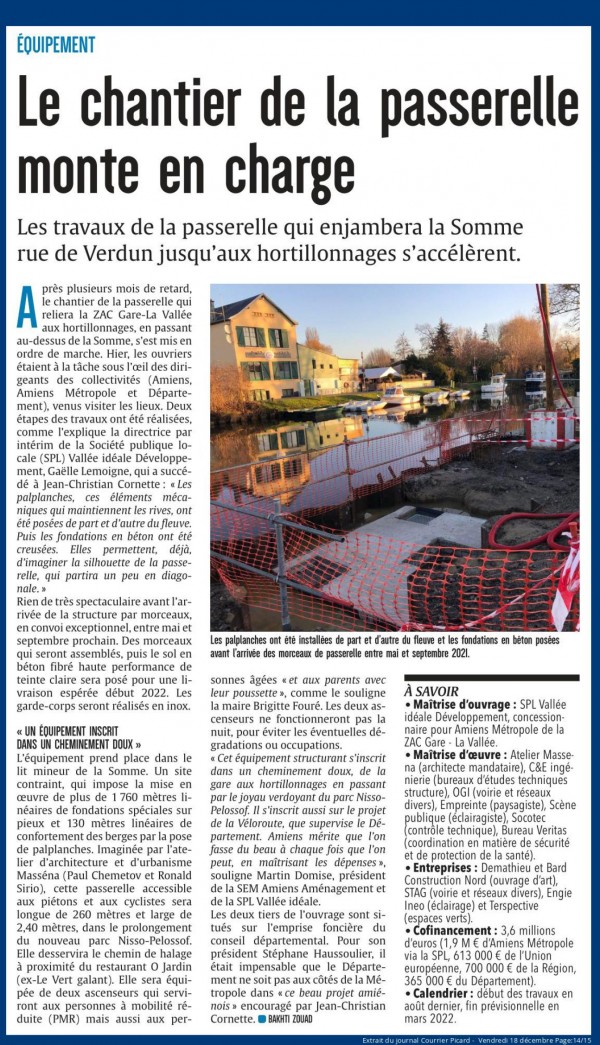 « Le chantier de la passerelle monte en charge » Courrier Picard