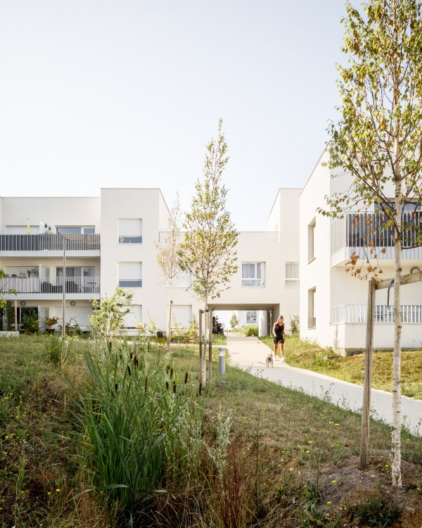 Entre les bâtiments et la voie ferrée, un jardin en pleine terre, cultivé par une association, rappelle l’histoire agricole du site. Sa production sera vendue directement dans les commerces du rez-de-chaussée.