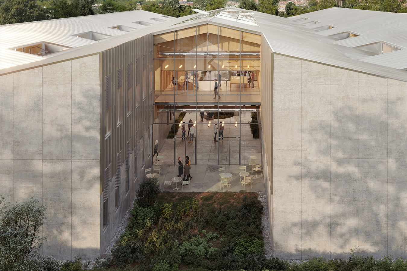 Pour son équilibre psychique et physique, l’être humain a besoin d’être en relation avec la nature et le naturel. S’ils ne peuvent pas tout résoudre, l’architecture et l’urbanisme ont néanmoins leur part dans une dynamique de pacification et de bien-être. La présence d’arbres sur un site, l’art de capter la lumière naturelle, la fluidité de la relation intérieur/extérieur, le souffle d’un regard qui porte loin, un rapport modéré à la densité et à l’intensification sont des éléments fondamentaux de l’approche de l’architecture et de l’aménagement par l’agence.